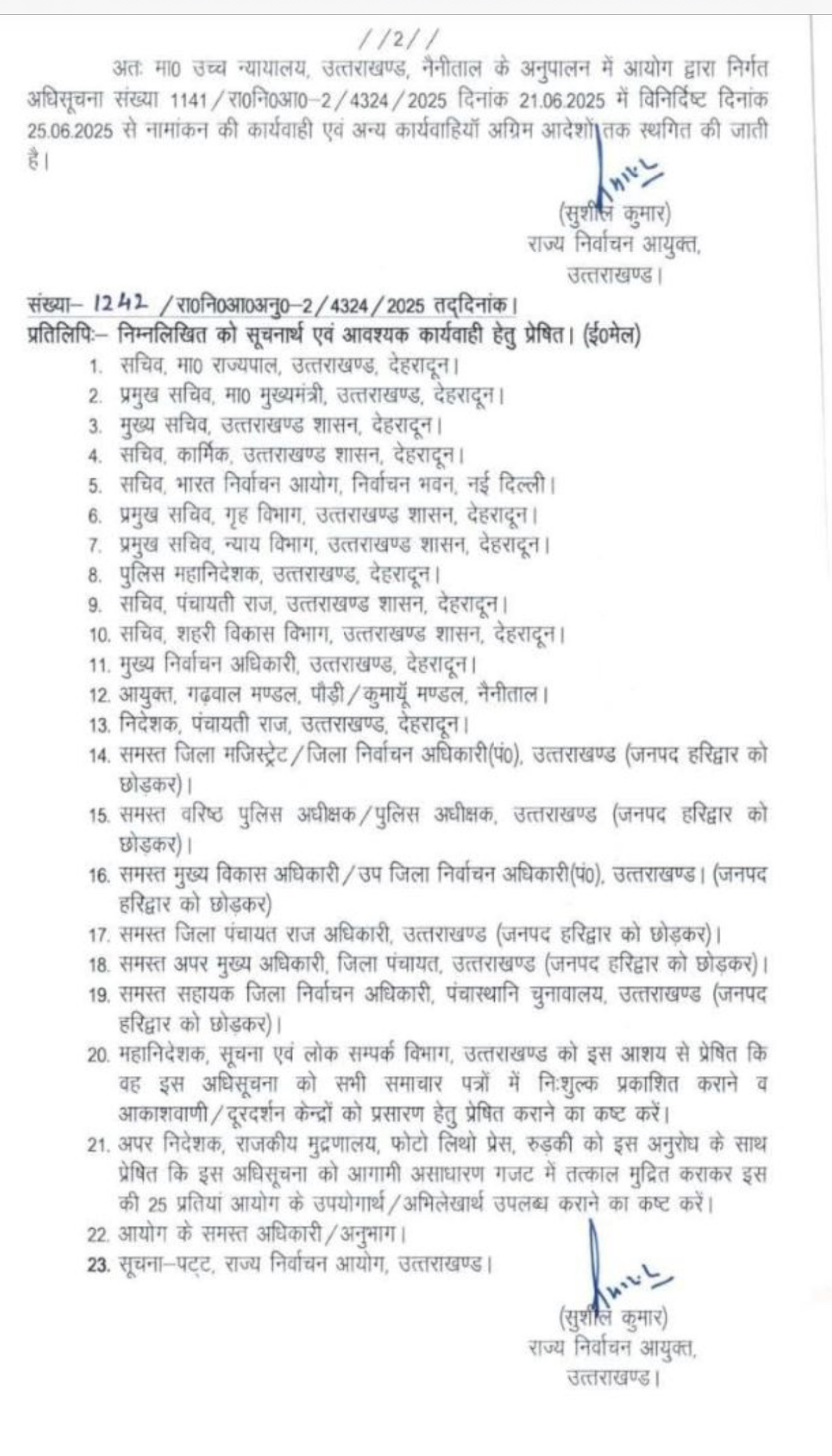 उत्तराखंड में राज्य निर्वाचन आयोग ने पंचायत चुनावों पर सभी तरह की कार्यवाही पर अग्रिम आदेशों तक लगाई रोक