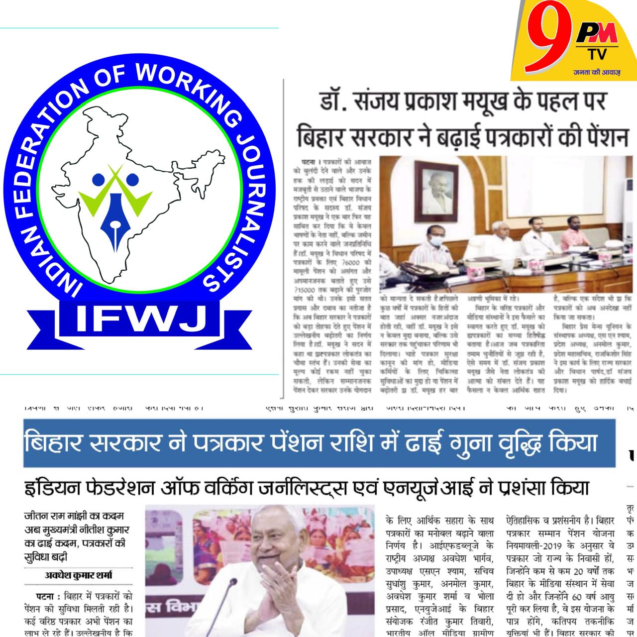 बिहार सरकार ने पत्रकार पेंशन में की ढाई गुना बढ़ोतरी, IFWJ ने की मुख्यमंत्री नीतीश कुमार की सराहना