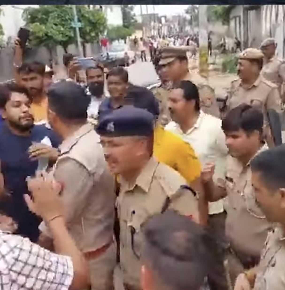 मुजफ्फरनगर में एक मानसिक रोगी ने हवा में छड़ी लहरा दी बस इसके बाद कुछ उपद्रवी कांवड़ियों ने उसके साथ जबरदस्त मारपीट की ,मौके पर मौजूद पुलिस मूक दर्शक बनीं रही